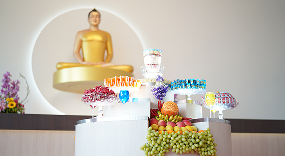 Your donation will go towards this once-a-month meritorious ceremony at DCS — Offering to All Buddhas in Nirvana. This special merit is unique to the Dhammakaya tradition. DCS prepares the finest food, fruits and sweets for our grandmaster and teachers to offer them to the countless Buddhas in Nirvana.